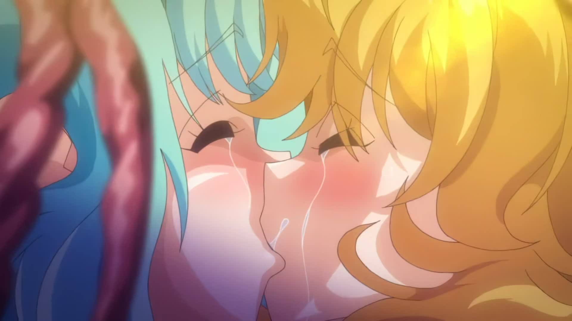 The surrounded Dacryons are restrained by sticky saliva sprayed on them. Tentacles lick all over their bodies, crawling into every hole, eventually inserted into their genitals and violently stirred.